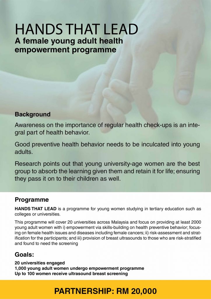 Hand That Lead: A Female Young Adult Health Empowerment Programme To find out more, +603-2698 7300 | contact@cancer.org.my