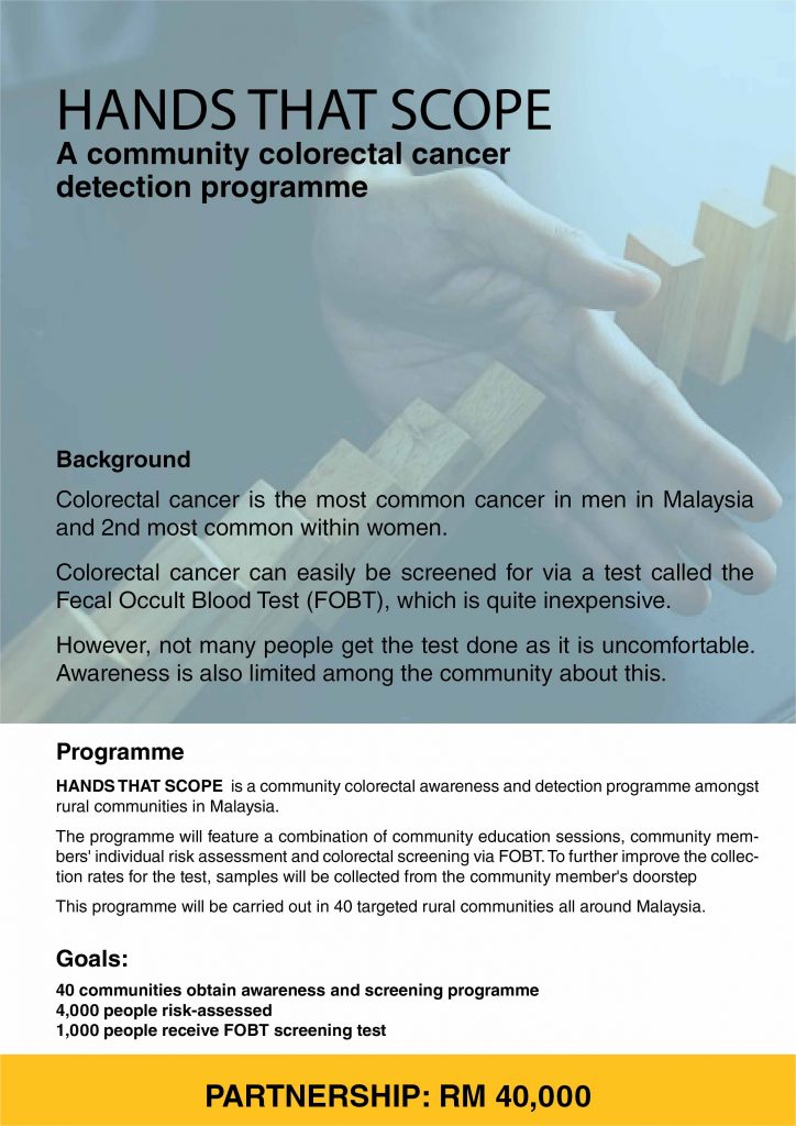 Hands That Scope: A Community Colorectal Cancer Detection Programme To find out more, +603-2698 7300 | contact@cancer.org.my
