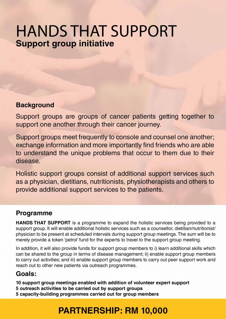 Hands That Support: Support Group Initiative To find out more, +603-2698 7300 | contact@cancer.org.my